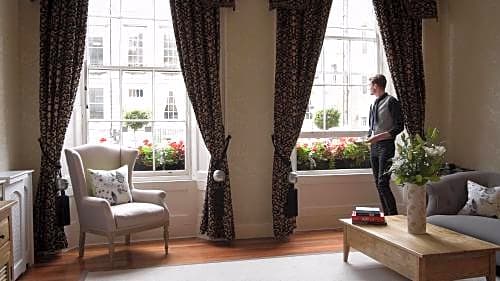 The Georgian "Age of Elegance" meets modern-day effervescence. Of all our Edinburgh accommodations, our Jacuzzi suite offer the most refined, relaxing experience. Covering up to 42 square yards (452 square feet), these suites confirm our status as the romantic hotel Edinburgh visitors appreciate. Each Jacuzzi suite is slightly different, but all have a large seating area and large double bed.